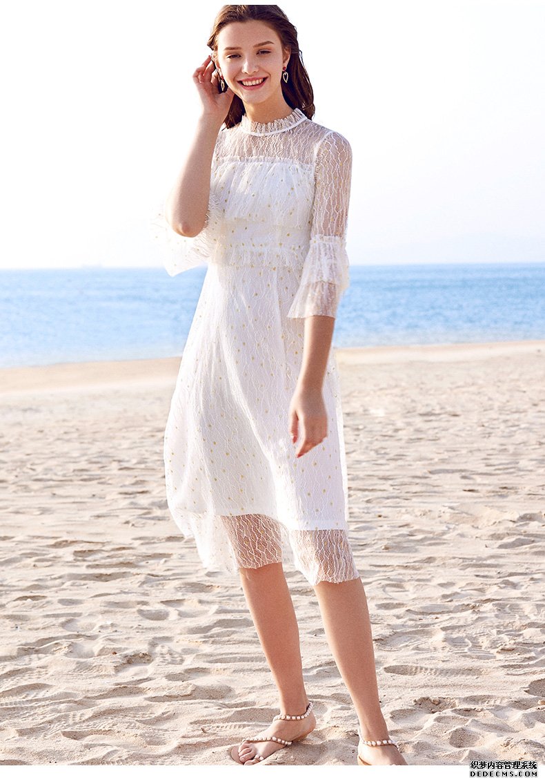 1.亮丝镂空蕾丝连衣裙女中长款超仙女ins