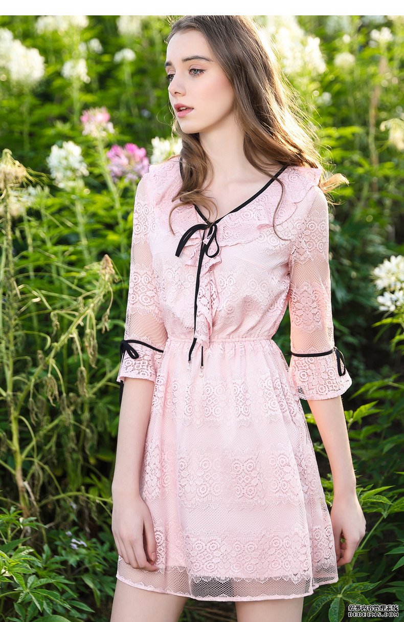 4.荷叶边蕾丝连衣裙法式少女温柔小香风矮个子超仙气